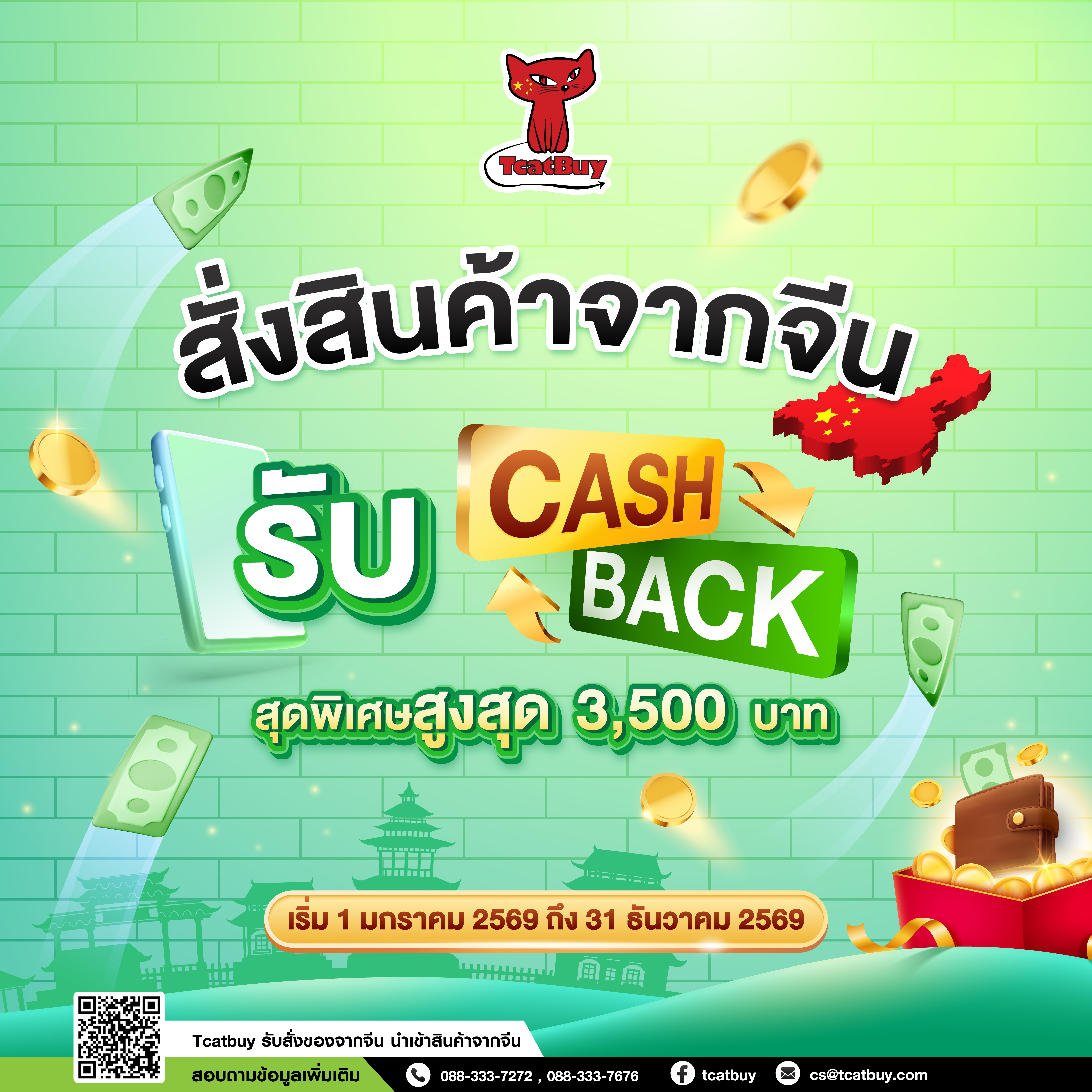 - เครดิตเงินคืนจะคืนในรูปแบบคูปอง ลูกค้าสามารถเช็ครหัสคูปองผ่านทางกล่องข้อความในระบบ Tcatbuy