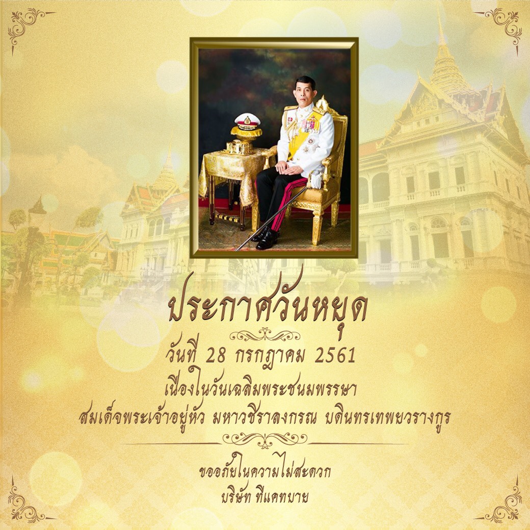 ประกาศวันหยุดวันที่ 28 กรฎาคม 2561