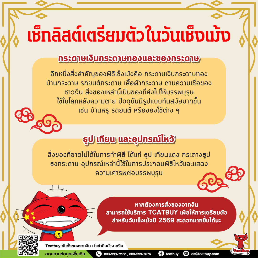 หากต้องการสั่งของไหว้หรือสินค้าเกี่ยวกับเทศกาลจากจีน สามารถใช้บริการ TCATBUY เพื่อให้การเตรียมตัวสำหรับวันเช็งเม้งปี 2569 สะดวกมากขึ้น