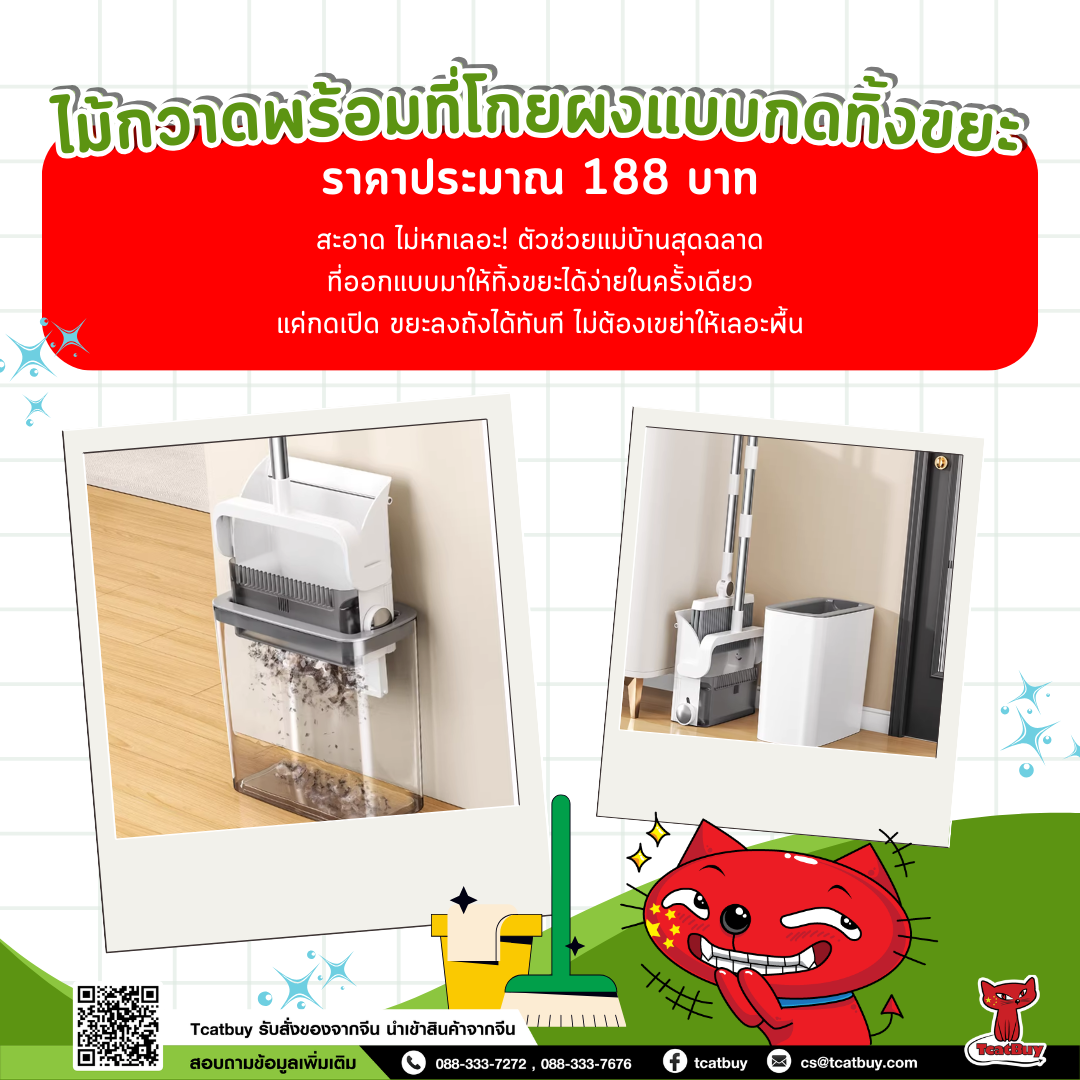 2. ไม้กวาดพร้อมที่โกยผงแบบกดทิ้งขยะ จาก Taobao ราคาประมาณ 188 บาท https://url.in.th/EAgxz