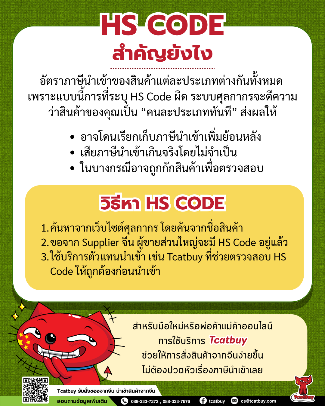 3. ใช้บริการตัวแทนนำเข้า เช่น Tcatbuy ที่ช่วยตรวจสอบ HS Code ให้ถูกต้องก่อนนำเข้า