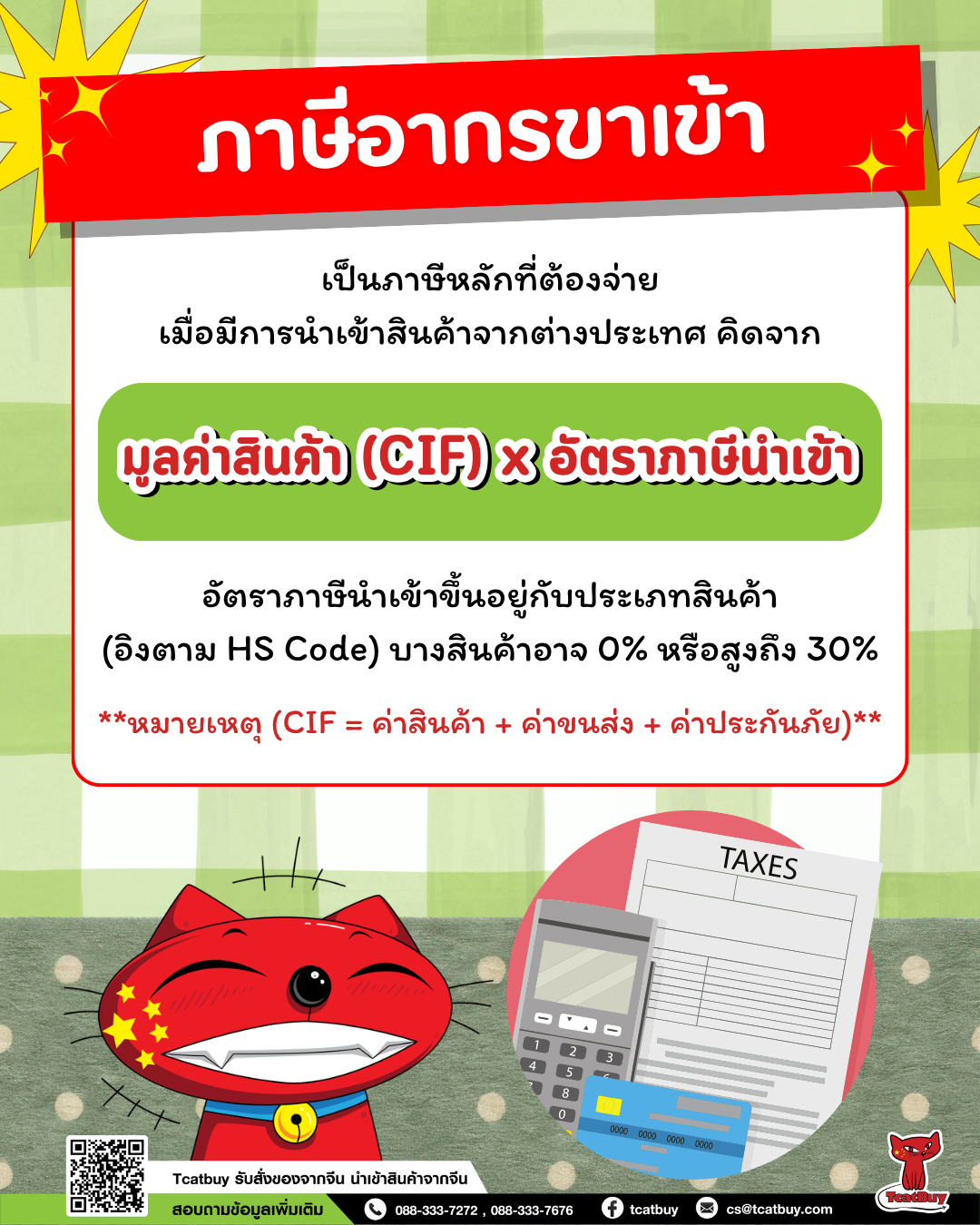 เป็นภาษีหลักที่ต้องจ่ายเมื่อมีการนำเข้าสินค้าจากต่างประเทศ คิดจาก