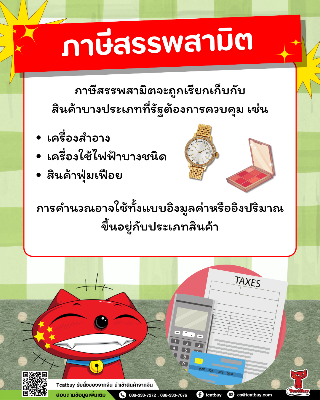 ภาษีสรรพสามิตจะถูกเรียกเก็บกับสินค้าบางประเภทที่รัฐต้องการควบคุม เช่น