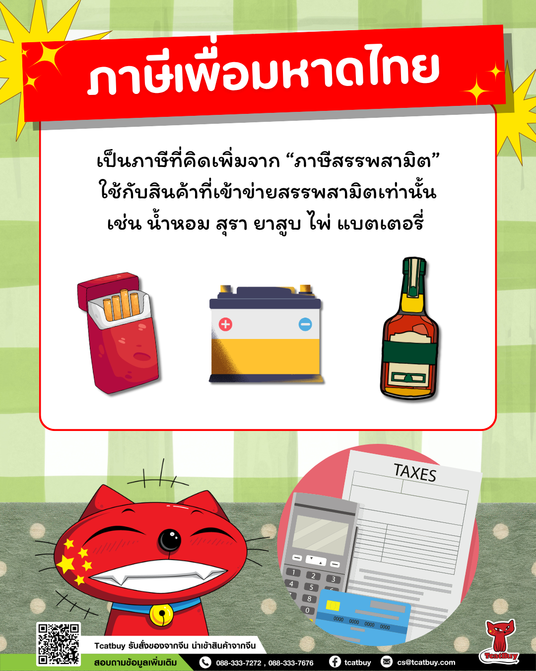 เป็นภาษีที่คิดเพิ่มจาก “ภาษีสรรพสามิต” ใช้กับสินค้าที่เข้าข่ายสรรพสามิตเท่านั้น เช่น น้ำหอม สุรา ยาสูบ ไพ่ แบตเตอรี่