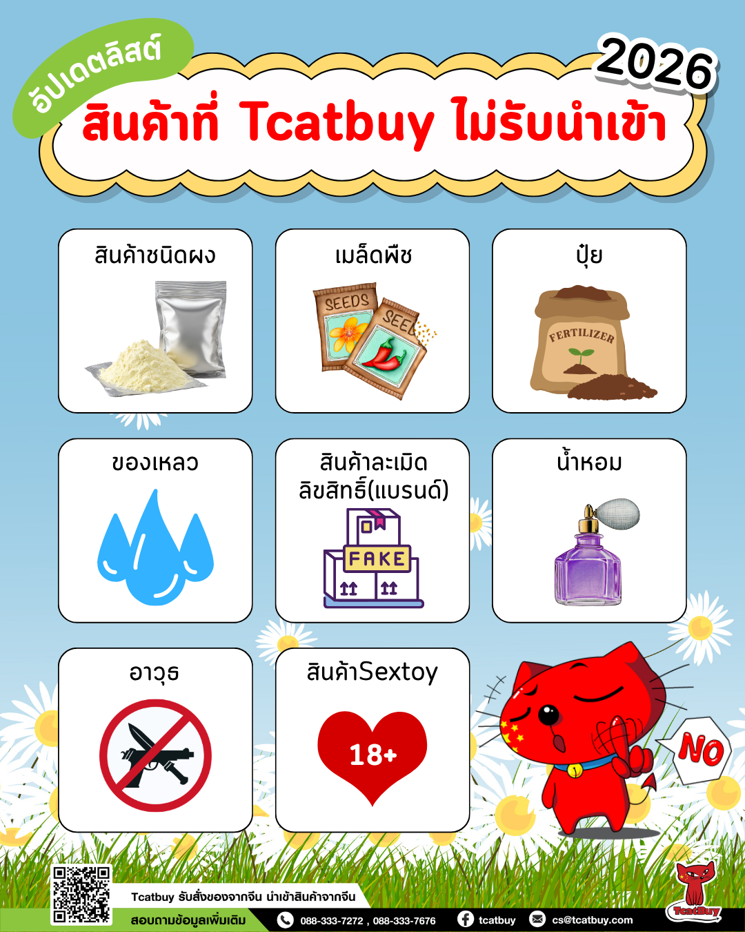 สั่งของจากจีนกับ TCATBUY --- อัปเดตลิสต์สินค้าที่ Tcatbuy ไม่รับนำเข้า 2026